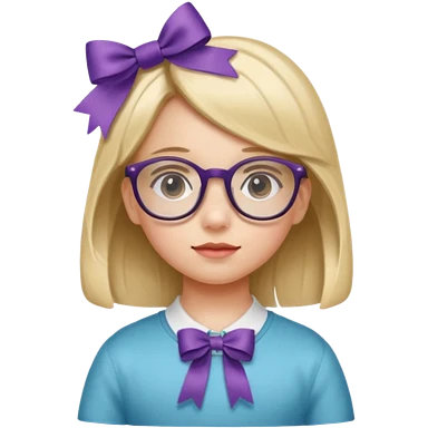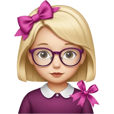 little girl with ribbon hairclip, wearing glasses emoji