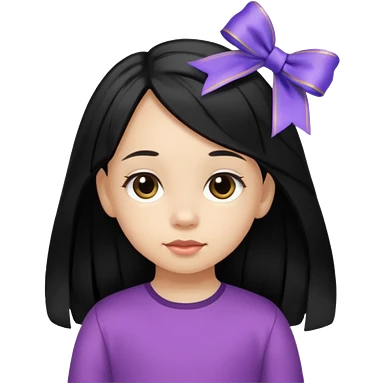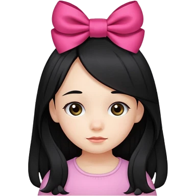 little girl with ribbon hairclip, long black hair emoji
