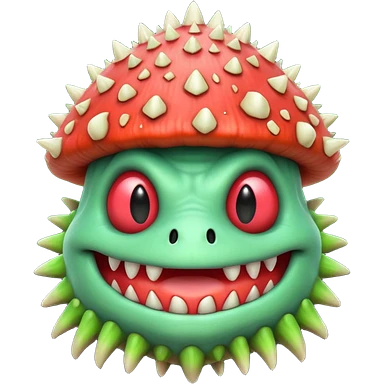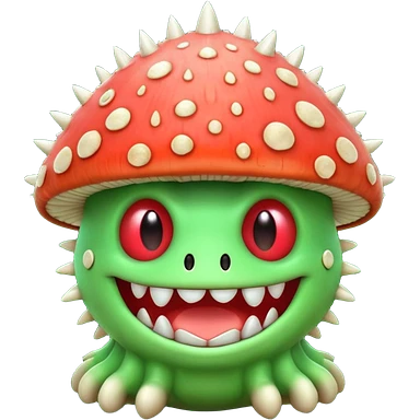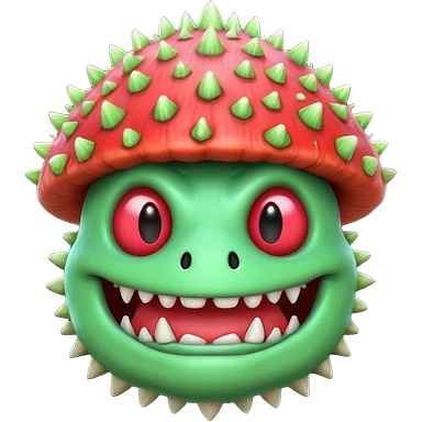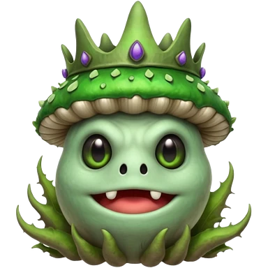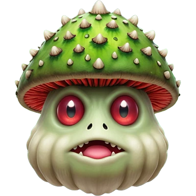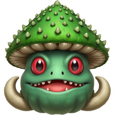 poisonous mushroom bear monster portrait, head and shoulders only, bear-like face, mushroom cap horns, toxic green aura, fluffy neck fur, fantasy beast style, 3D cartoon, mobile game icon style, clean background, no text, no watermark
