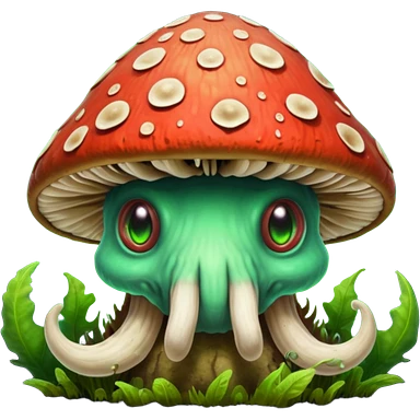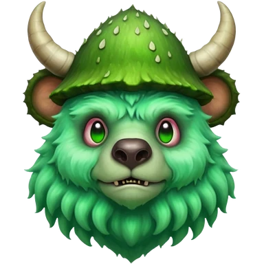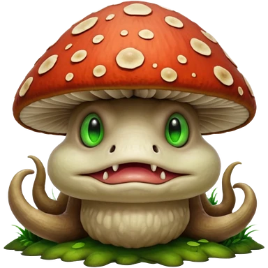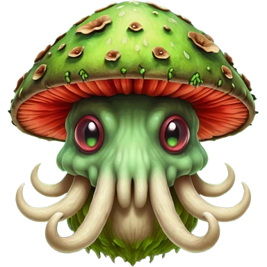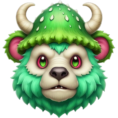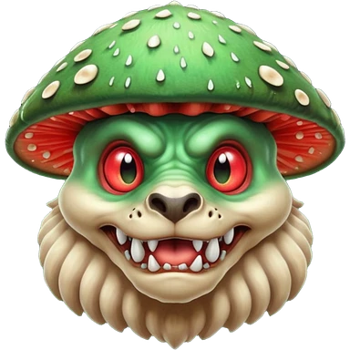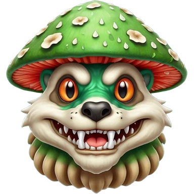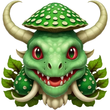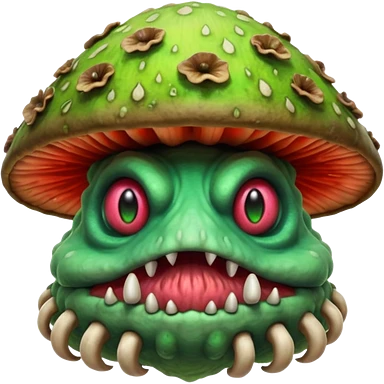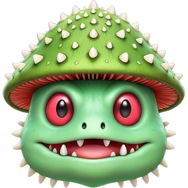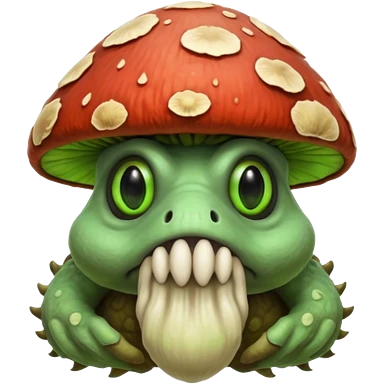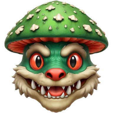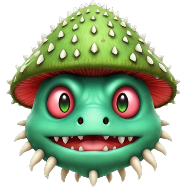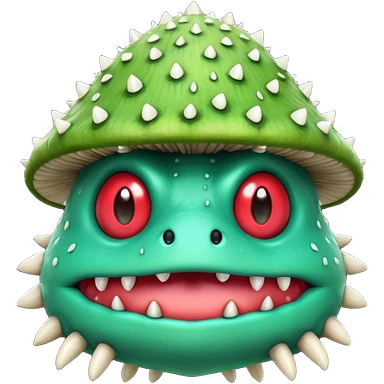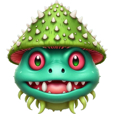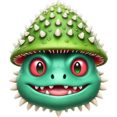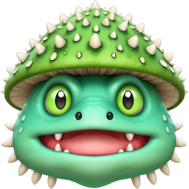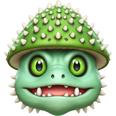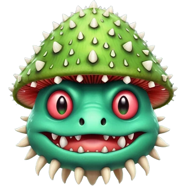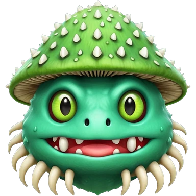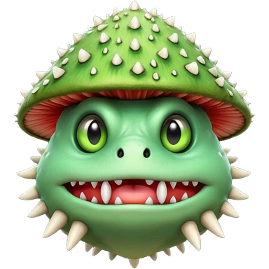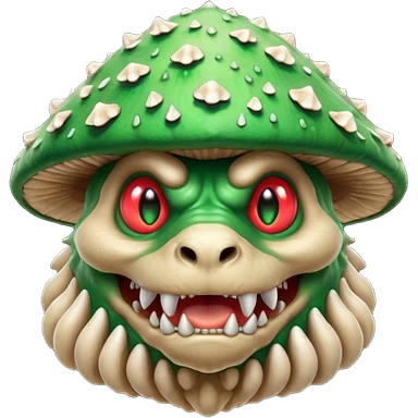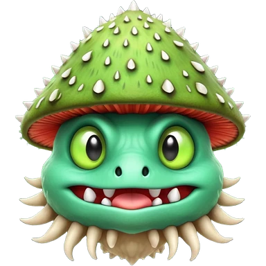 poisonous mushroom beast portrait, head and shoulders only, mushroom shell armor, spiky fungus growths, toxic green veins, beast-like mouth, heavy fungal texture, 3D cartoon, mobile game icon style, clean background, no text, no watermark