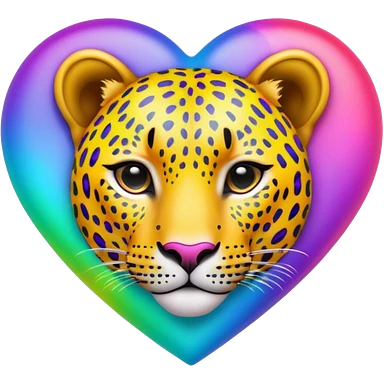 A colorful rainbow-neon-colored wild realistic leopard-printed-patterned BIG heart emoji