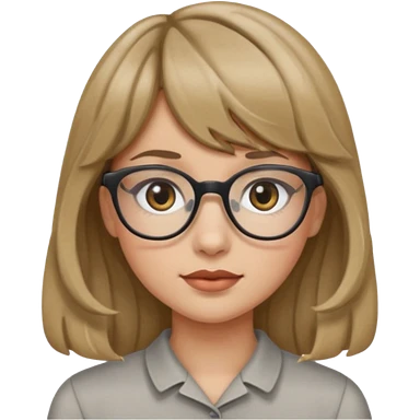 Uma garota de cabelo ondulado loiro escuro,mas com franja lisa e olhos pretos,usa óculos e a cor de pele branca emoji