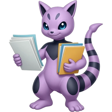 pokemon mewtwo purple, with sheets and folders in their hands emoji