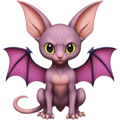 Pokémon-Swoobat-Fruitbat-Noibat-Sphynx-Lykoi-fusion, full body emoji