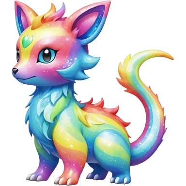 Oversaturated Rainbow-swirled Sparkly Ethereal Soft Pokémon-Fakémon-Digimon-Creature, (full body) emoji