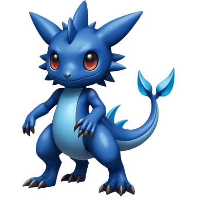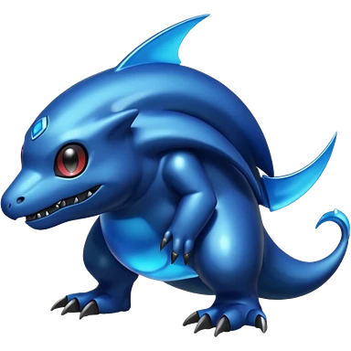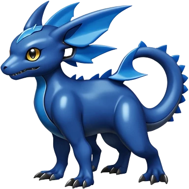 Dusky Glossy Oil-Sheen Blackened Blue Pokémon-Fakémon-Digimon-Creature, (full body) emoji