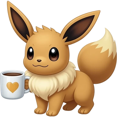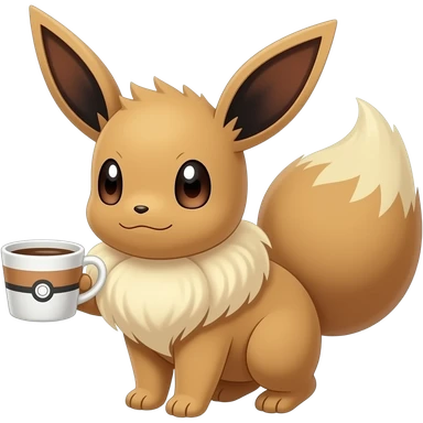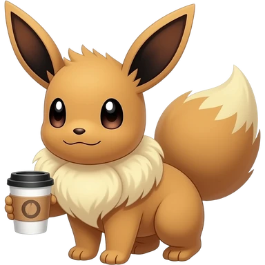 Pokémon Evee holding a coffee emoji