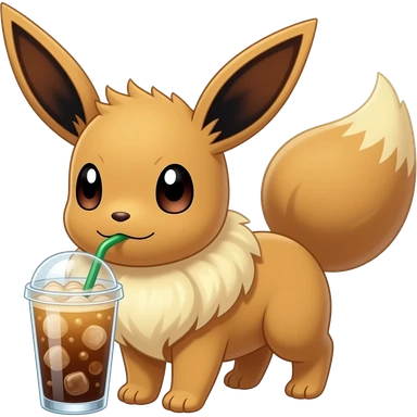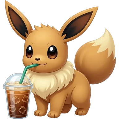 Pokémon Evee drinking an iced latte And holding it emoji