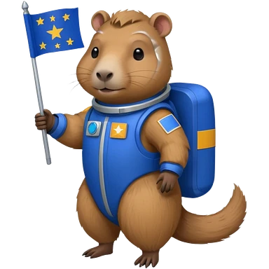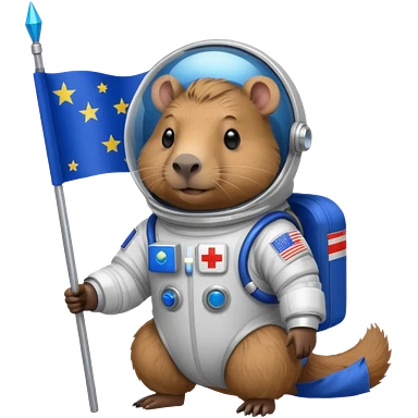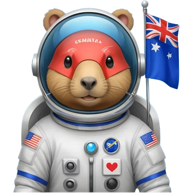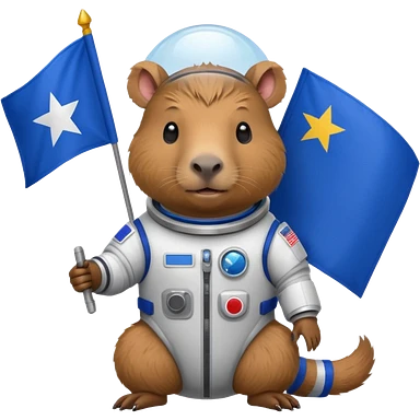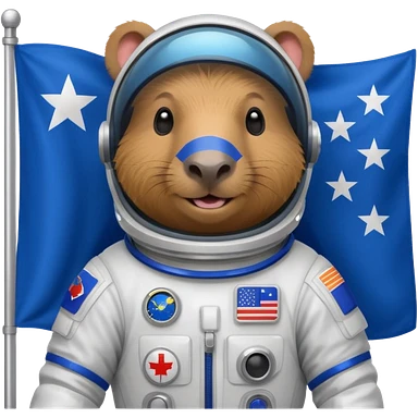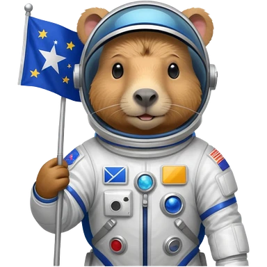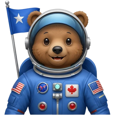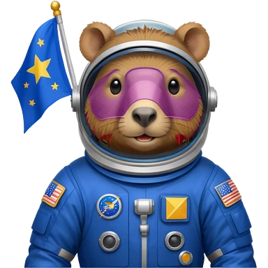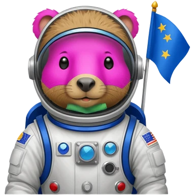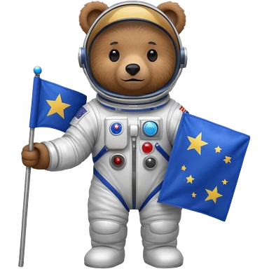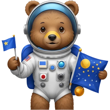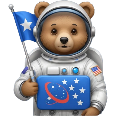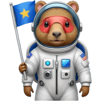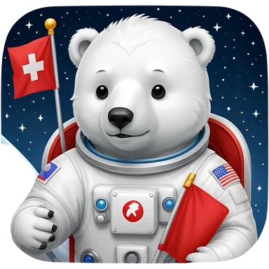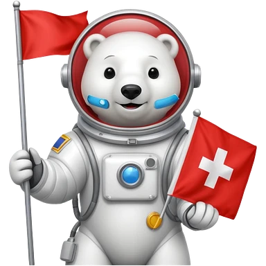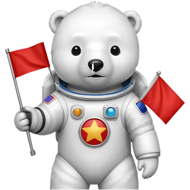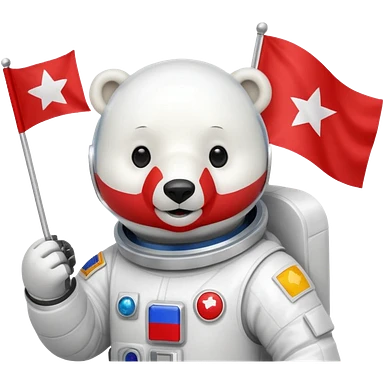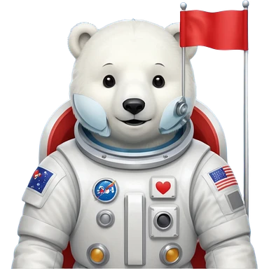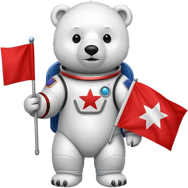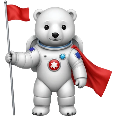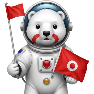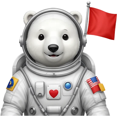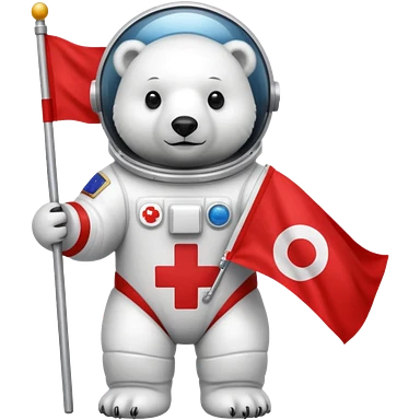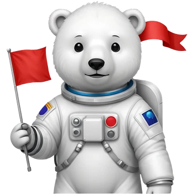 Polar bear in space suit, holding red rectangle flag emoji | AI Emoji Generator