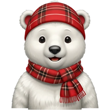 polar bear wear red tartan scarf emoji | AI Emoji Generator