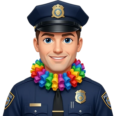 police with party ruffle on his neck emoji