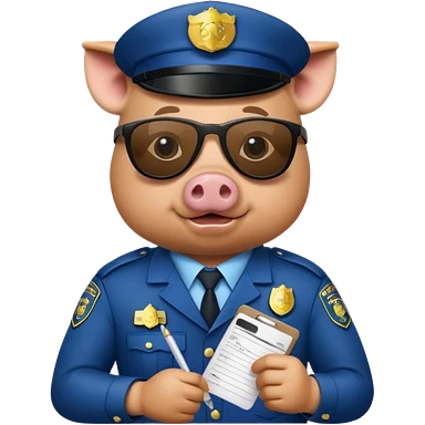 An emoji of a traffic police officer writing a ticket. The officer wears a traditional uniform with a hat and badge, holding a notepad and pen. The design is simple, cartoonish, and emoji-like, with a neutral yet authoritative expression emoji
