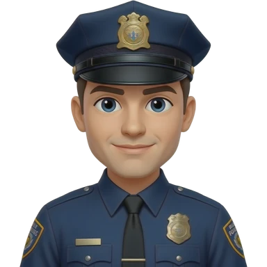 policeman emoji, blue uniform collar and badge visible, head and shoulders only, no cap/hat/headwear, flat emoji style, centered, bold outline, minimal detail, plain background emoji