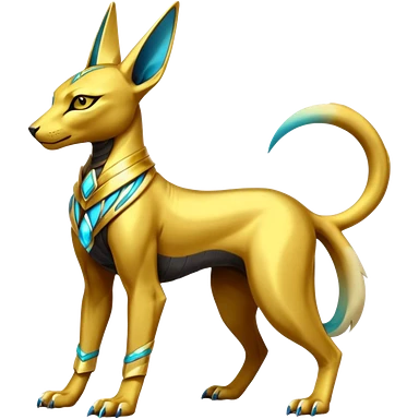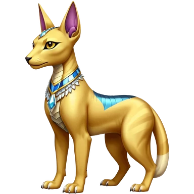 Modern futuristic shiny colorful Anubis-Sphynx-Lombax-Zeraora-Renamon-fusion (full body) emoji