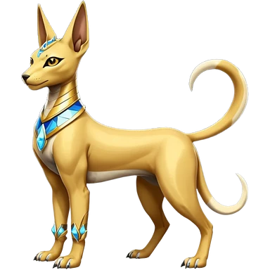 Modern futuristic shiny diamond colorful Anubis-Sphynx-Lombax-Zeraora-Renamon-fusion (full body) emoji
