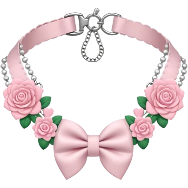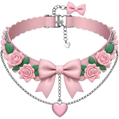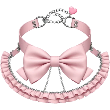 Pastel-baby-rose-pink Lolita-styled aesthetic cute kawaii choker-collar-necklace adorned with with white frills, roses, hearts, bow tie, silver chains, sakura, apparel separated emoji
