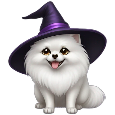 Pomeranian with a white scarf with flowers painted on it on his head emoji