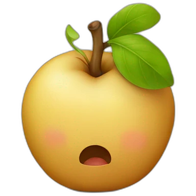 Pomme avec un sourire qui fume et fait signe de allo de la main. Un vers sort de la pomme emoji