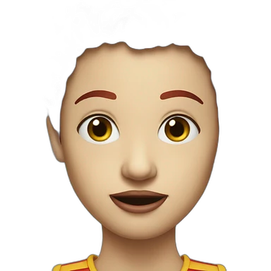 Pomni a female jester with red and blue jester clothes with a sad face emoji