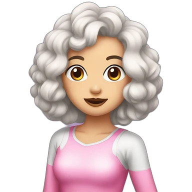Girl with Brown hair and skin with longo pompom in hair with Pink shirt and neon jacket and Lipstick emoji
