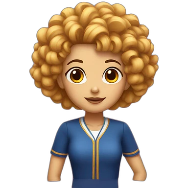 A pretty girl, her eyes is blue, her hair is brown long wavy hair, and wear green Hawkins cheerleader uniform and hold pompom emoji