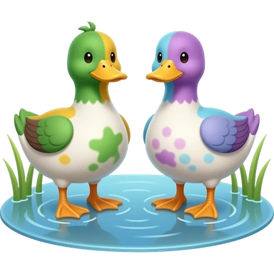 A 3D cartoon duck floating on a calm pond, soft ripples, rounded features, vibrant colors, cute and happy face, Memoji-style lighting. emoji