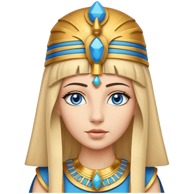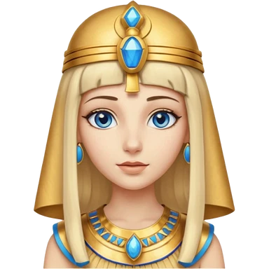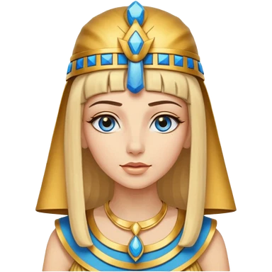 Cleopatra vestita da faraone con il cappello da faraone ma con gli occhi azzurri e i capelli lunghi biondi non troppo chiari emoji