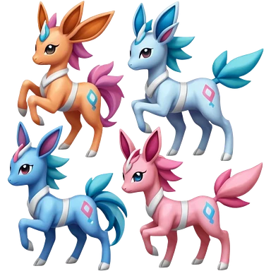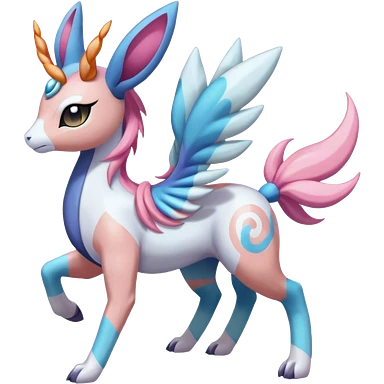 Ponyta-Meloetta-Sylveon-Dialga-Suicune-Palkia-fusion-animal-hybrid-creature, full body emoji