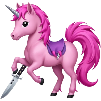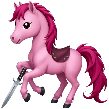 pony with evil smile holding sharp knife emoji | AI Emoji Generator