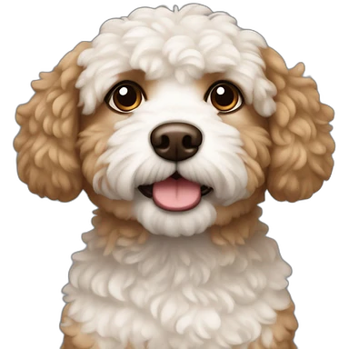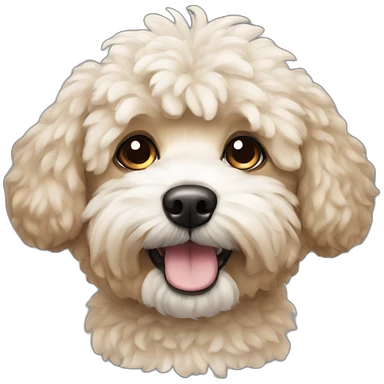 Blonde haired teenager wearing light purple tank topBlack and white and gray poochon dog emoji