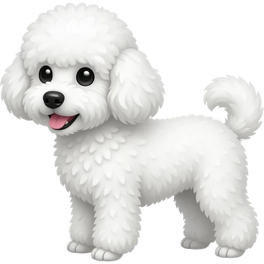 White Bichon frisée and poodle mix dog with a slight tan tint. Face emoji