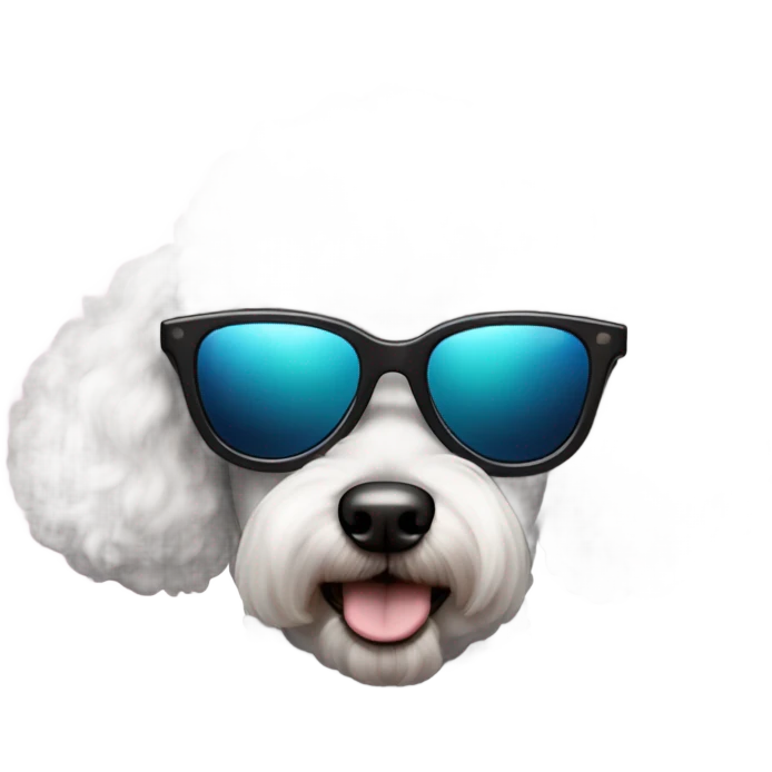 Black and white poodle puppy wearing sunglasses and smiling emoji