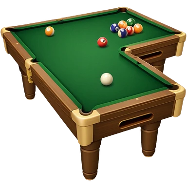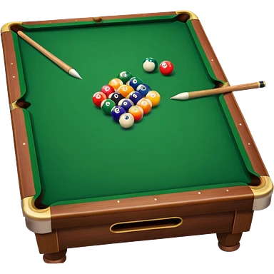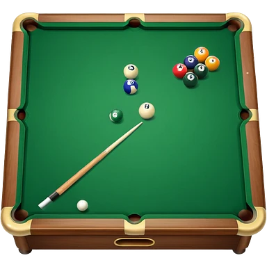 A well-arranged pool table with colorful billiard balls neatly placed, and a cue stick poised to take a shot. The setting is a dimly lit room with a focused atmosphere, highlighting the precision and strategy involved in the game of billiards. emoji