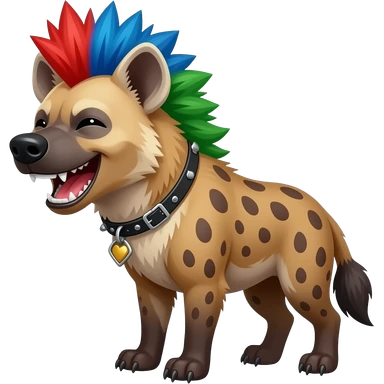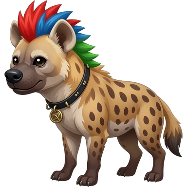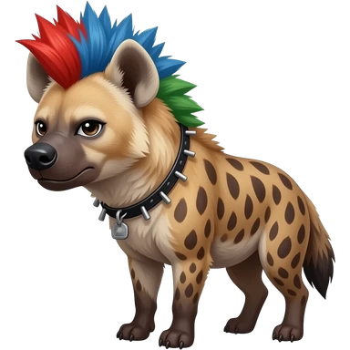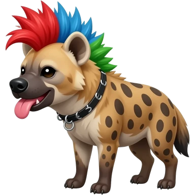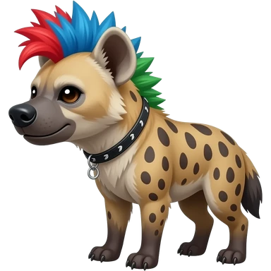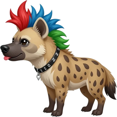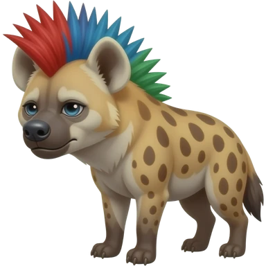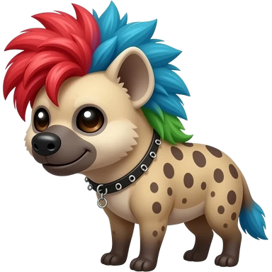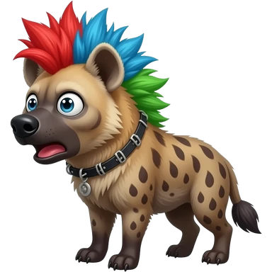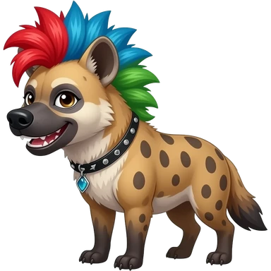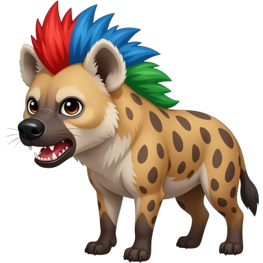hyène punk cheveux rouge bleu et vert qui a une tete mignonne emoji