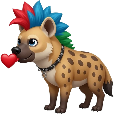 hyène punk cheveux rouge bleu vert qui envoi un bisou avec un coeur emoji