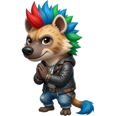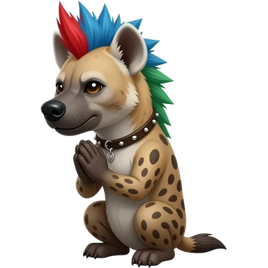 hyène punk cheveux rouge bleu vert qui prie emoji