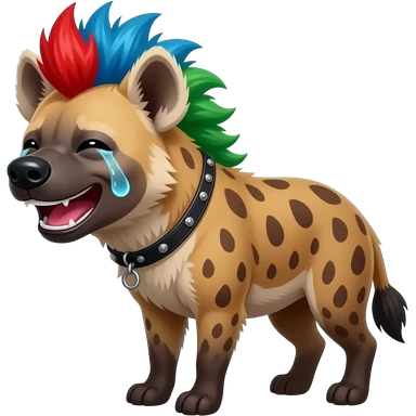 hyène punk cheveux rouge bleu vert qui rigole avec des larmes emoji