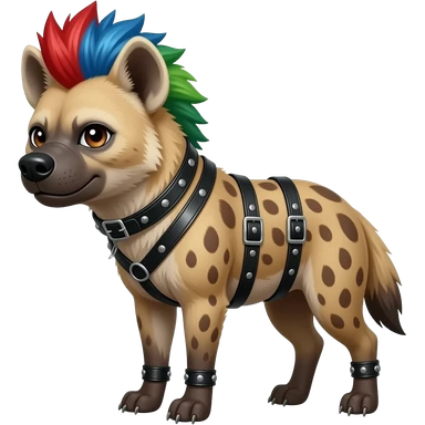 hyène punk cheveux rouge bleu et vert bdsm qui sourit emoji