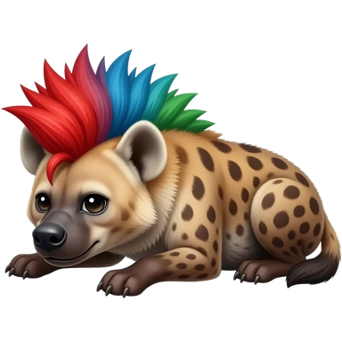 hyène punk cheveux rouge bleu et vert qui se roule par terre emoji