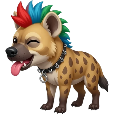 hyène punk cheveux rouge bleu vert qui tire la langue et fait un clin d'oeil emoji