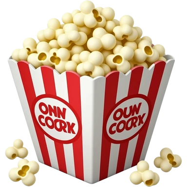 popcorn in a red and white striped box that says Kokice in the front emoji