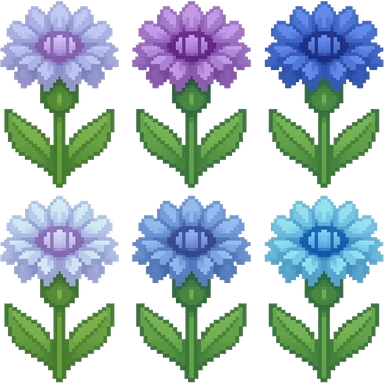 Cornflower flowers pixelated, not more than 6 colors emoji