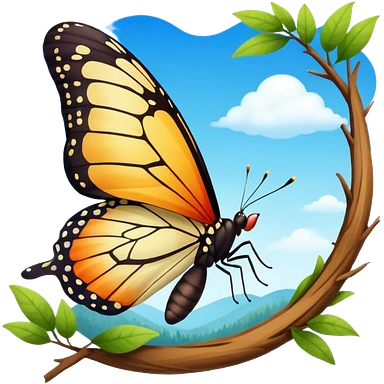پروانه ای که داره از پیله در میاد و به سمت آسمان آبی او دل جنگل پرواز مبکنه emoji
