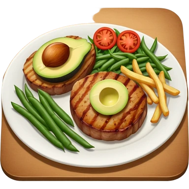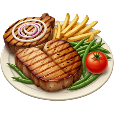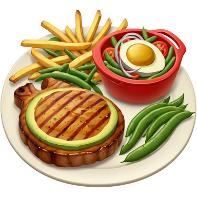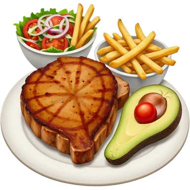 pork chops, fries, tomato onion salad, and avocado emoji | AI Emoji Generator