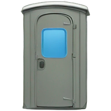 Beige Porta potty with maroon top and bathroom symbol emoji