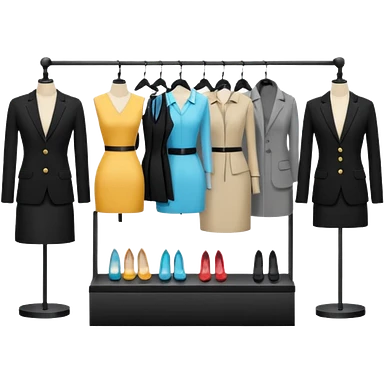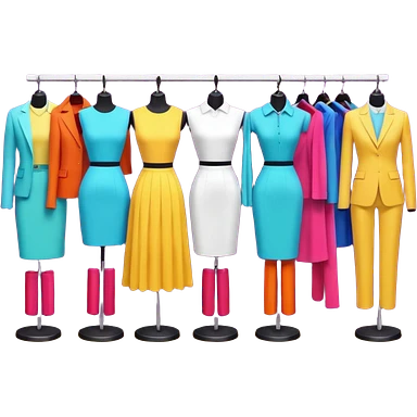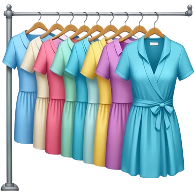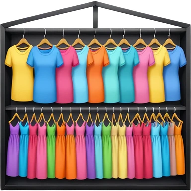 Clothing Store – racks of folded shirts and hanging dresses. emoji