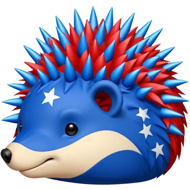 Red and blue Porcupine facing right. Bottom layer red: covers feet, round face with no facial features and 2 spikes. blue upper layer 6 spikes, 3 white 5 pointed stars in the middle of the blue. emoji