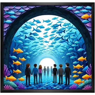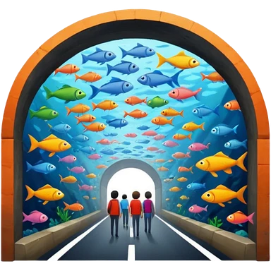 des gens qui sont dans un tunnele et les parois c'est des poissons emoji
