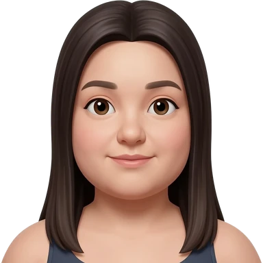 young woman, fuller face and chubby body, long straight dark hair, front view, neutral expression, realistic portrait, white background. emoji