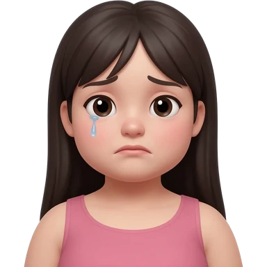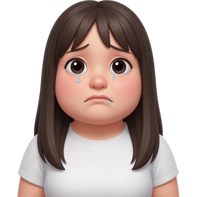 young woman, fuller face and chubby body, long straight dark hair, front view, visibly sad expression, realistic portrait, white background. emoji